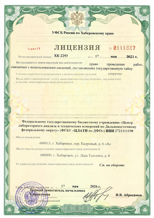 Лицензия на право проведения работ, связанных с использованием сведений, составляющих государственную тайну