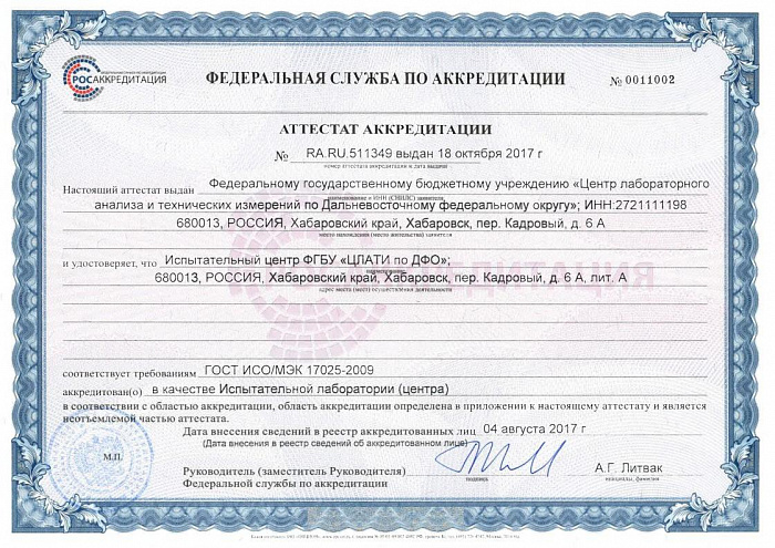 Аттестат аккредитации
